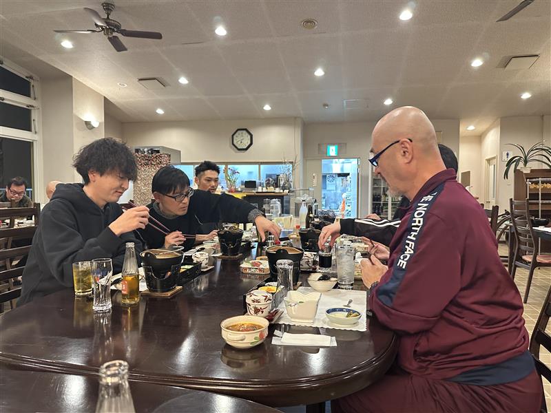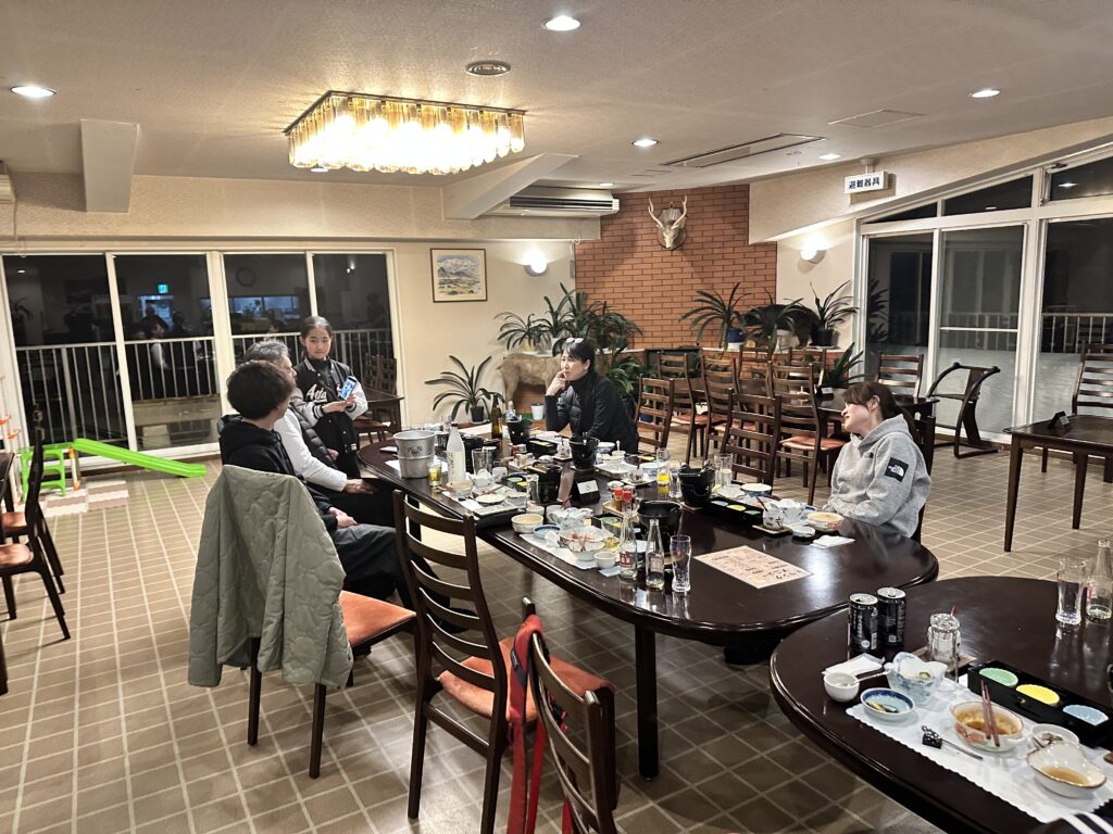 スキー場すぐ近くの「ロッジ太郎」で宿泊し、夜は宿泊したメンバーで夕食を食べながらお酒を飲み交わし、リラックスした時間を過ごすことができました。